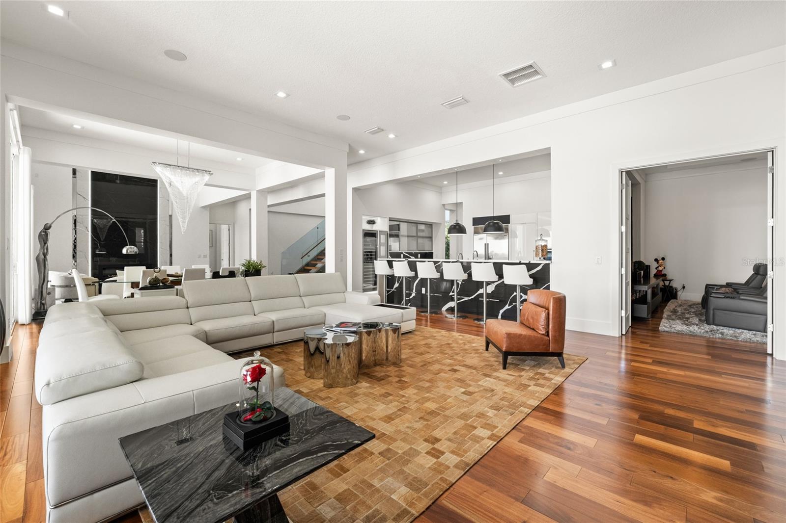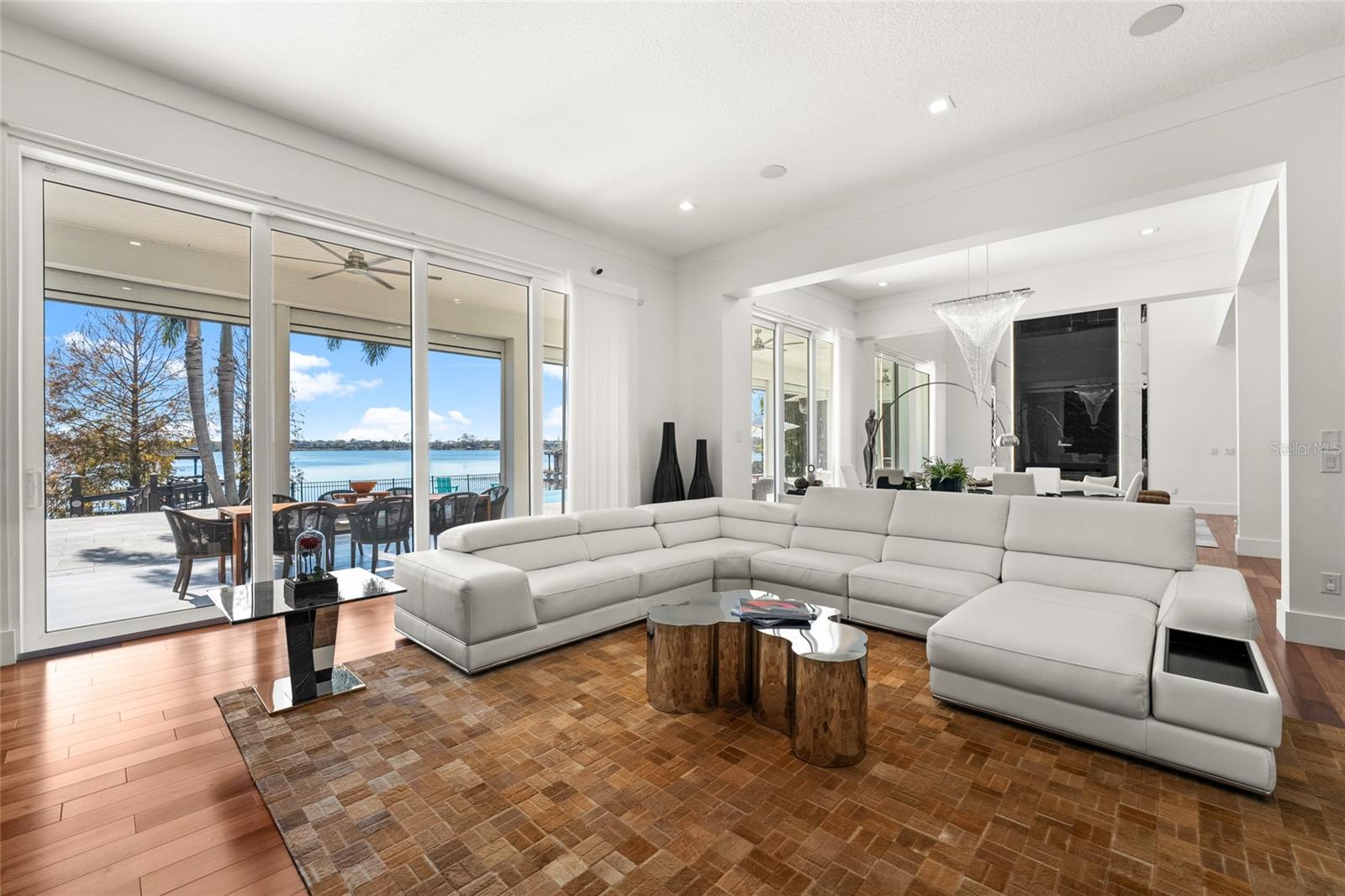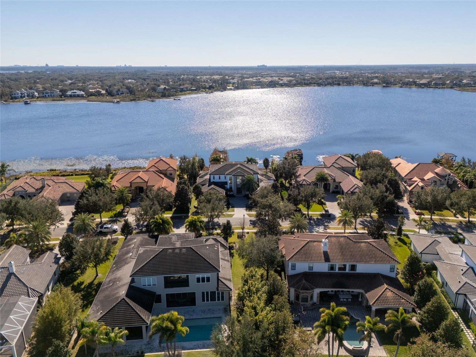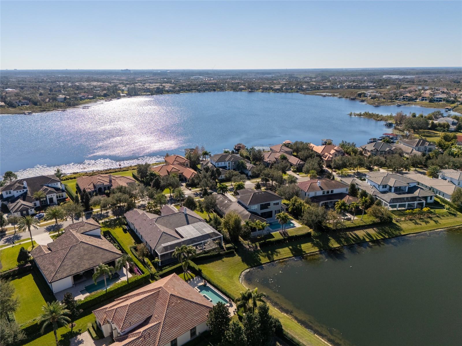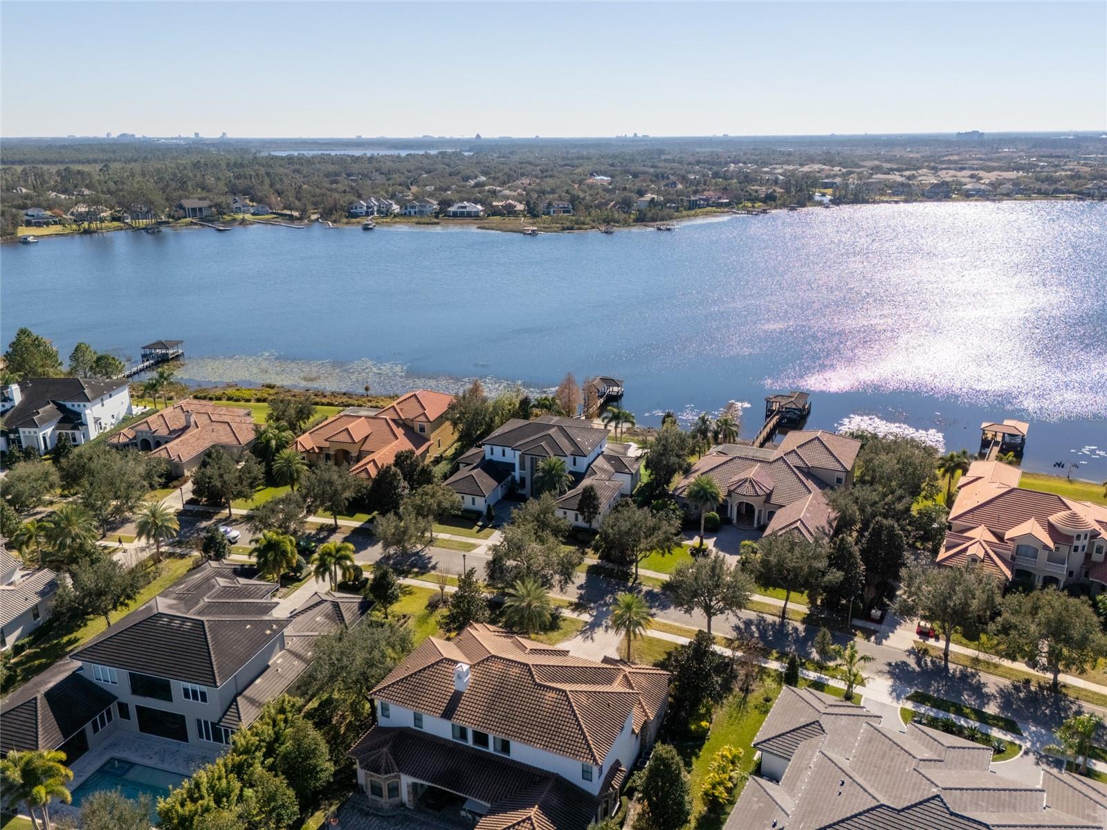 Welcome to an exquisite blend of luxury and sophistication in this fully furnished lakefront estate, nestled within the sought-after, guard-gated golf community of Keene’s Pointe in Windermere. Situated on an expansive 1.16-acre lot, this architectural masterpiece offers breathtaking views of Lake Burden and the nightly Magic Kingdom fireworks, visible from your private balcony or dock. Spanning over 5,260 square feet of masterfully designed living space, this custom-built residence features 5 opulent bedrooms, 5.5 elegantly appointed bathrooms, and a wealth of amenities tailored to a life of comfort, style, and seamless entertaining. The gourmet kitchen, a chef’s dream, is outfitted with granite countertops, bespoke cabinetry, professional-grade appliances, a spacious walk-in pantry, and a temperature-controlled wine refrigerator. Perfect for hosting gatherings, the kitchen opens to a sprawling covered lanai with a built-in barbecue area, where guests can enjoy lakeside dining and unparalleled views. The master suite is a serene retreat, featuring a cozy fireplace, a spa-inspired ensuite with a private sauna, an oversized double shower, and a custom-designed walk-in closet. Step directly onto the lanai to enjoy tranquil mornings or unwind under the stars. For those who work from home or require a private retreat, the residence includes a spacious office, beautifully appointed with custom cabinetry and built-ins, providing an ideal space for productivity and inspiration. Additional highlights include a state-of-the-art media room with a projection system and a professional-grade gym conveniently located in the garage. Outdoors, a private dock offers direct access to Lake Burden, perfect for boating enthusiasts or enjoying serene waterfront moments. Living in Keene’s Pointe enhances this unparalleled offering with access to its luxurious clubhouse, resort-style swimming pool, tennis courts, and the renowned Jack Nicklaus-designed Golden Bear Golf Course. These world-class amenities ensure a vibrant and fulfilling lifestyle within this coveted community. From its turnkey furnishings and meticulously crafted interiors to its enviable location and exceptional community amenities, this estate epitomizes the pinnacle of lakefront living. Schedule your private tour today to discover why this extraordinary property is the perfect choice for those who demand the very best. Recent improvements include a kitchen renovation (2023), stonework (2023), an upstairs AC unit (2024), two downstairs AC units (2023), water heaters (2023), a fireplace (2022), kids’ room renovation (2023), master bedroom renovation (2023), new travertine marble pool patio pavers (2022), and a mini golf section (2022).
